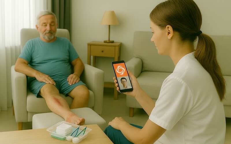 Au domicile et en EHPAD, notre service d'appui régional met à disposition des soignants une coordination experte de parcours en plaies et cicatrisation et un réseau régional d'experts intervenant en télémédecine — téléexpertise, téléconsultation assistée à domicile, téléassistance médicale.