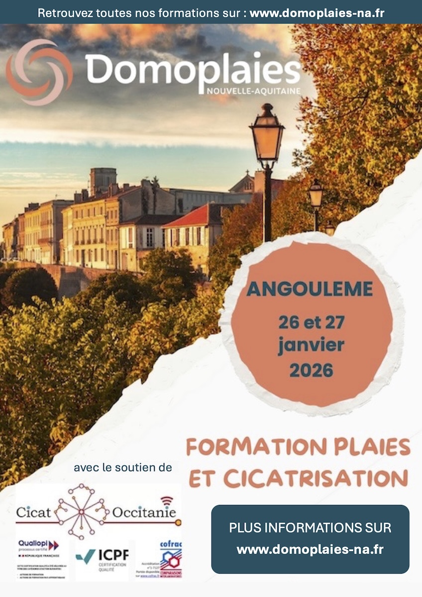 Domoplaies NA, association loi 1901 à but non lucratif, accompagne les professionnels de santé dans la prise en charge de patients porteurs des plaies chroniques et complexes sur l'ensemble de la région Nouvelle-Aquitaine.