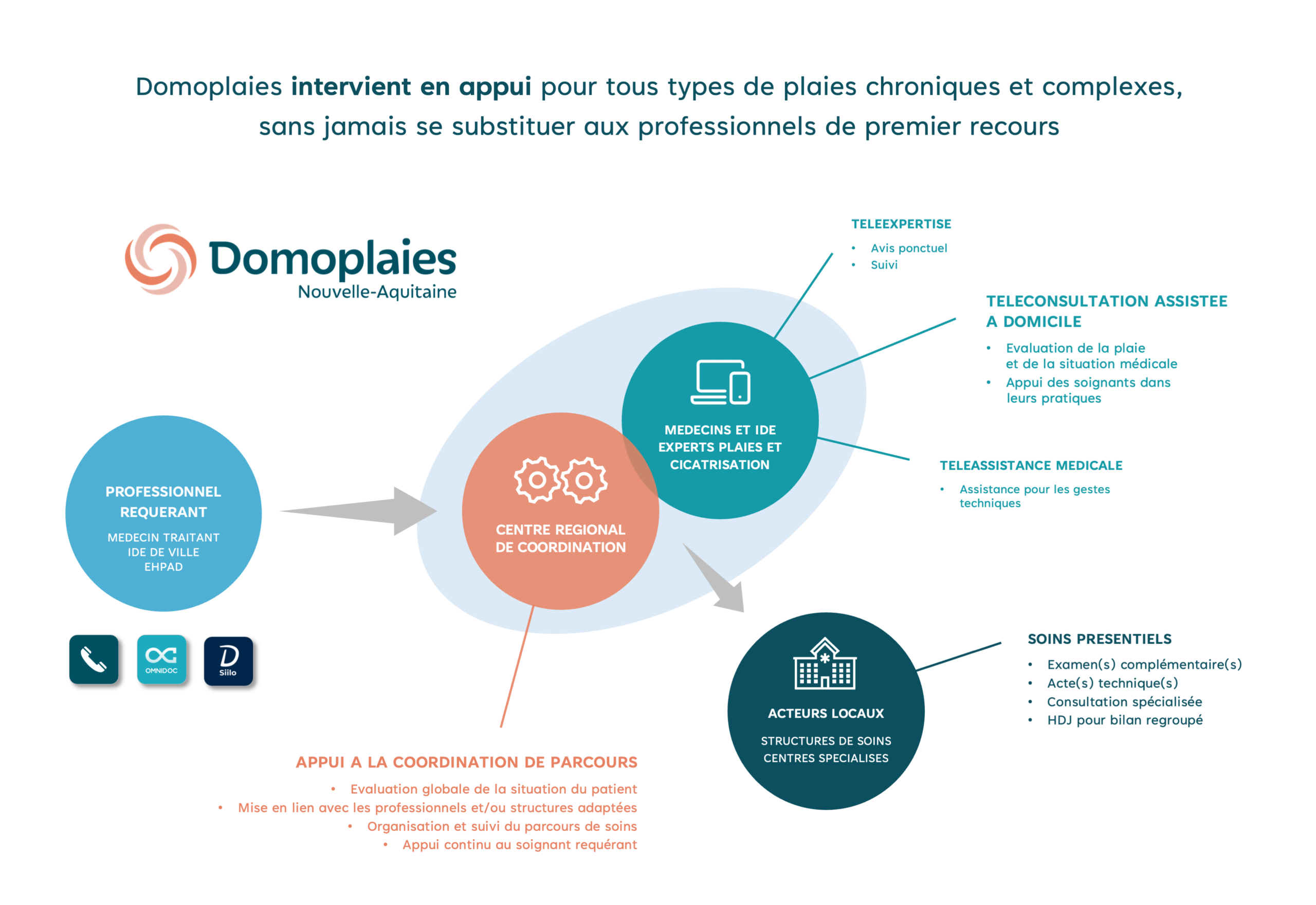 Nous répliquons en Nouvelle-Aquitaine depuis 2022 le dispositif régional d'expertise et de coordination en plaies et cicatrisation « Domoplaies » menée en Occitanie dans le cadre d'une expérimentation article 51.
